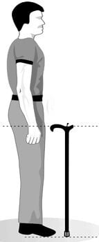 Om de wandelstok op de juiste hoogte in te stellen is meten met de schoenen aan. De wandelstok met de handgreep naar beneden op de grond, laat de handen losjes naar beneden en teken de wandelstok net boven de handpalm af [ ter hoogte van de carpus af ]. Voor de zekerheid kun je altijd een cm meer nemen.